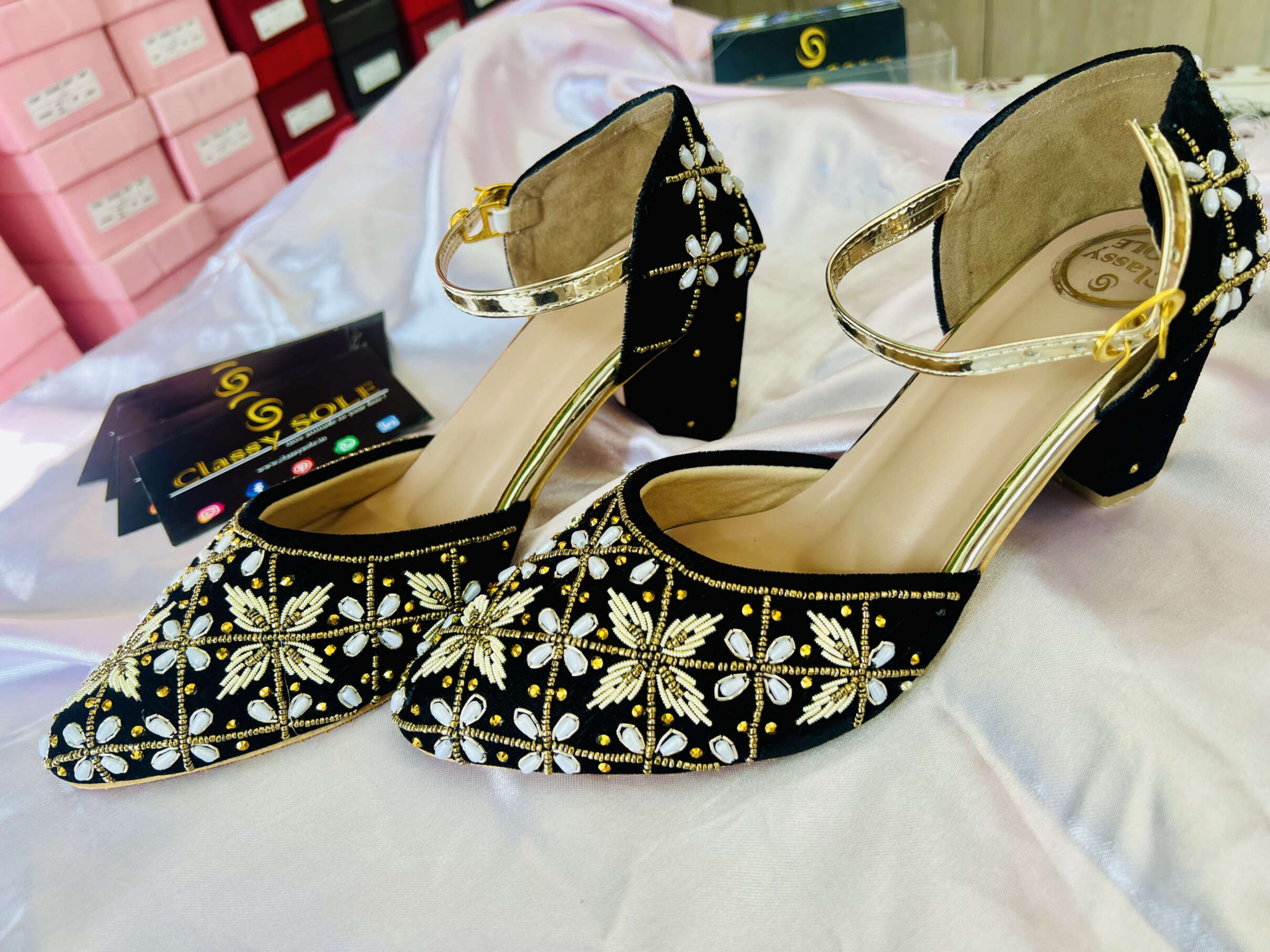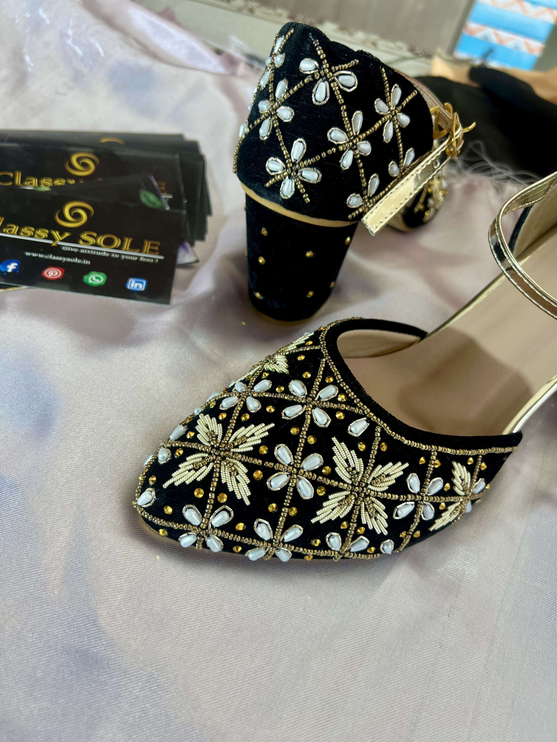 #AerisBlockHeels #ClassySole #LuxuryFootwear #HandEmbroidered #FestiveFashion #BridalStyle #ElegantHeels #StatementShoes #BlockHeels #ComfortAndStyle