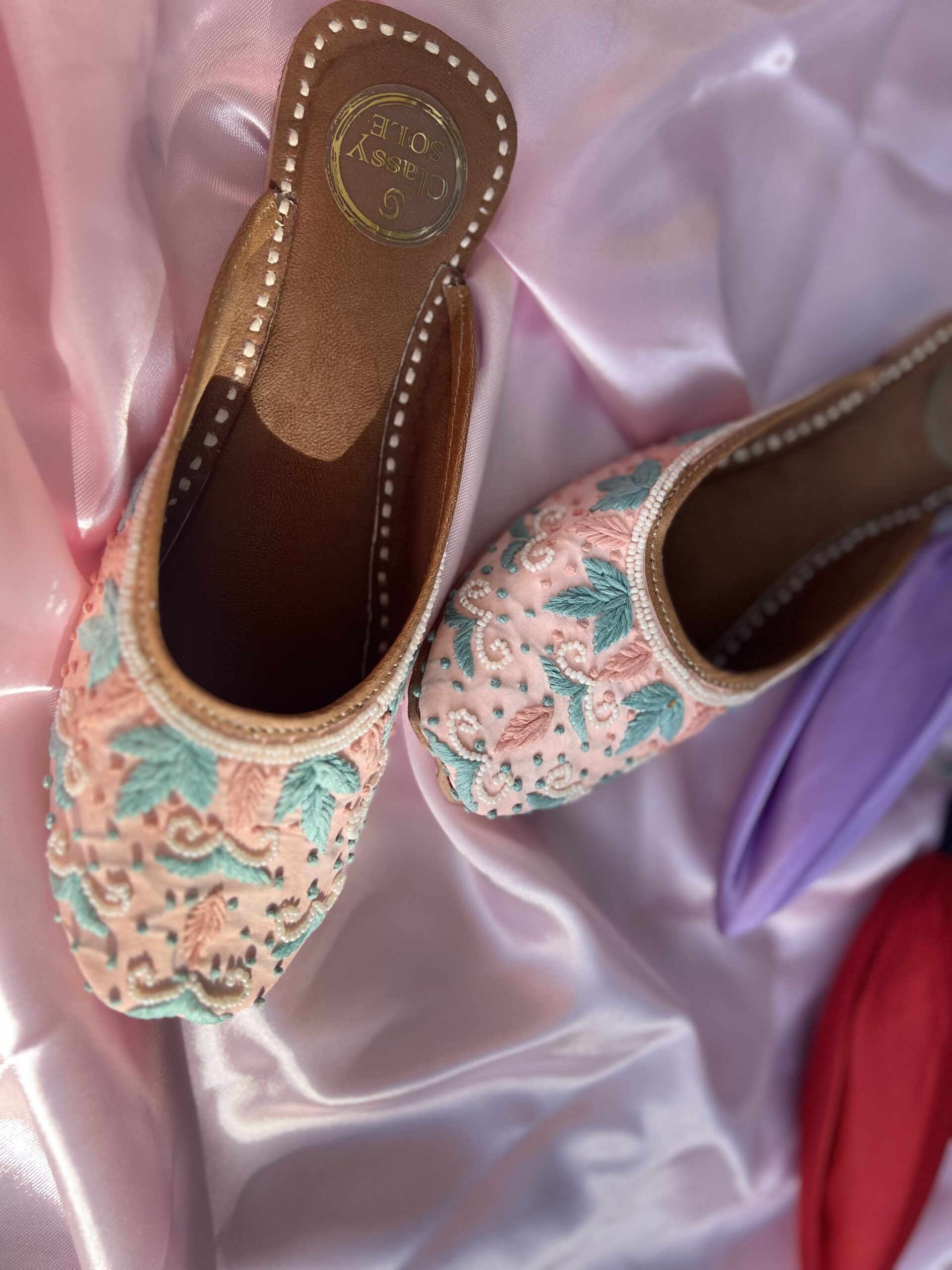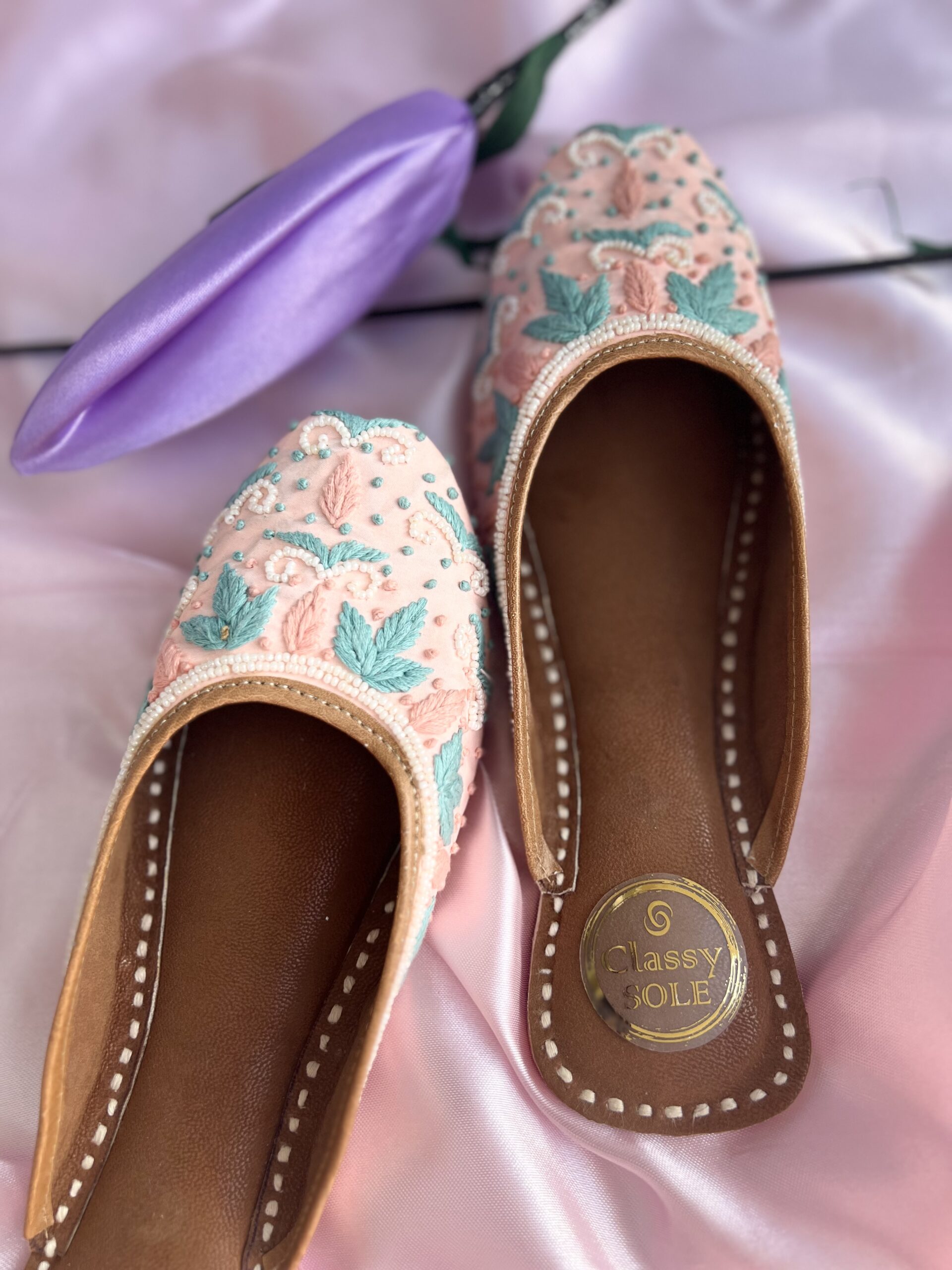 Discover the epitome of grace and sophistication with our Pastel Shade Threadwork Back Open Juttis. Each pair is meticulously handcrafted with intricate threadwork, showcasing delicate patterns in soothing pastel shades. The back-open design adds a modern twist, ensuring easy slip-on wear without compromising on style. Crafted with the utmost attention to detail, these juttis boast a comfortable sole, allowing you to step with ease and elegance all day long. Perfect for weddings, festive occasions, or adding a touch of charm to your everyday attire, our Pastel Shade Threadwork Back Open Juttis are a must-have addition to your footwear collection.
