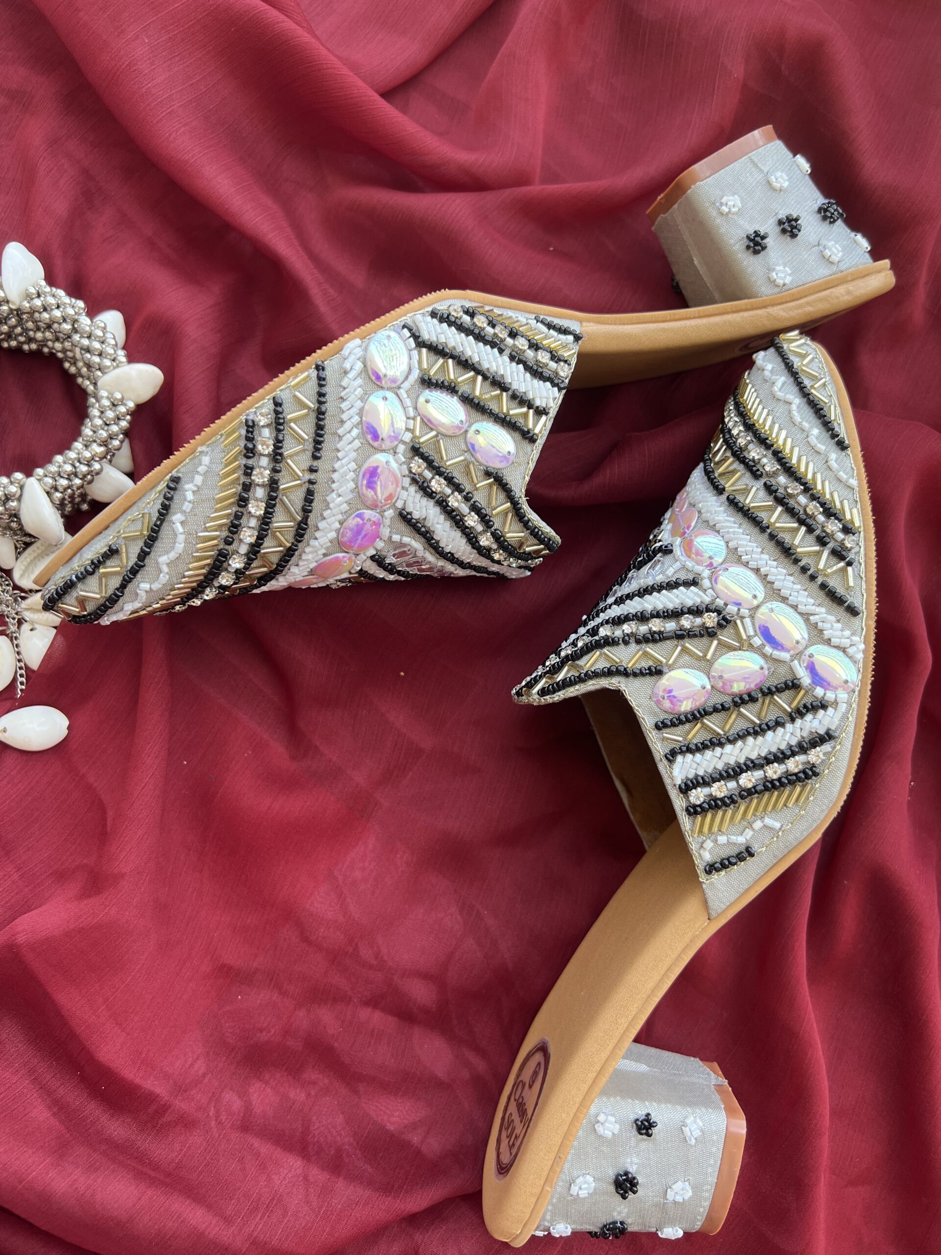 Crafted in classic grey with elegant black detailing, these heeled mules exude an aura of understated luxury. The meticulous work and attention to detail showcase a blend of professionalism and style that’s perfect for any occasion.